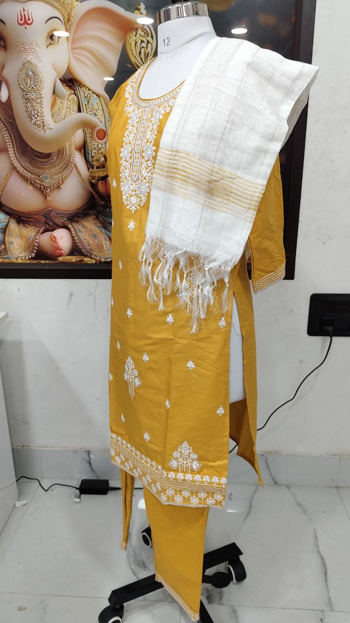 Elevate your ethnic wardrobe with this stunning three-piece kurta set, designed for the modern woman who values tradition with a touch of contemporary flair. This beautiful ensemble includes a stylish kurta, a comfortable matching pant, and a coordinated dupatta – making it perfect for festive occasions, casual outings, or family gatherings.