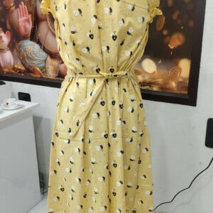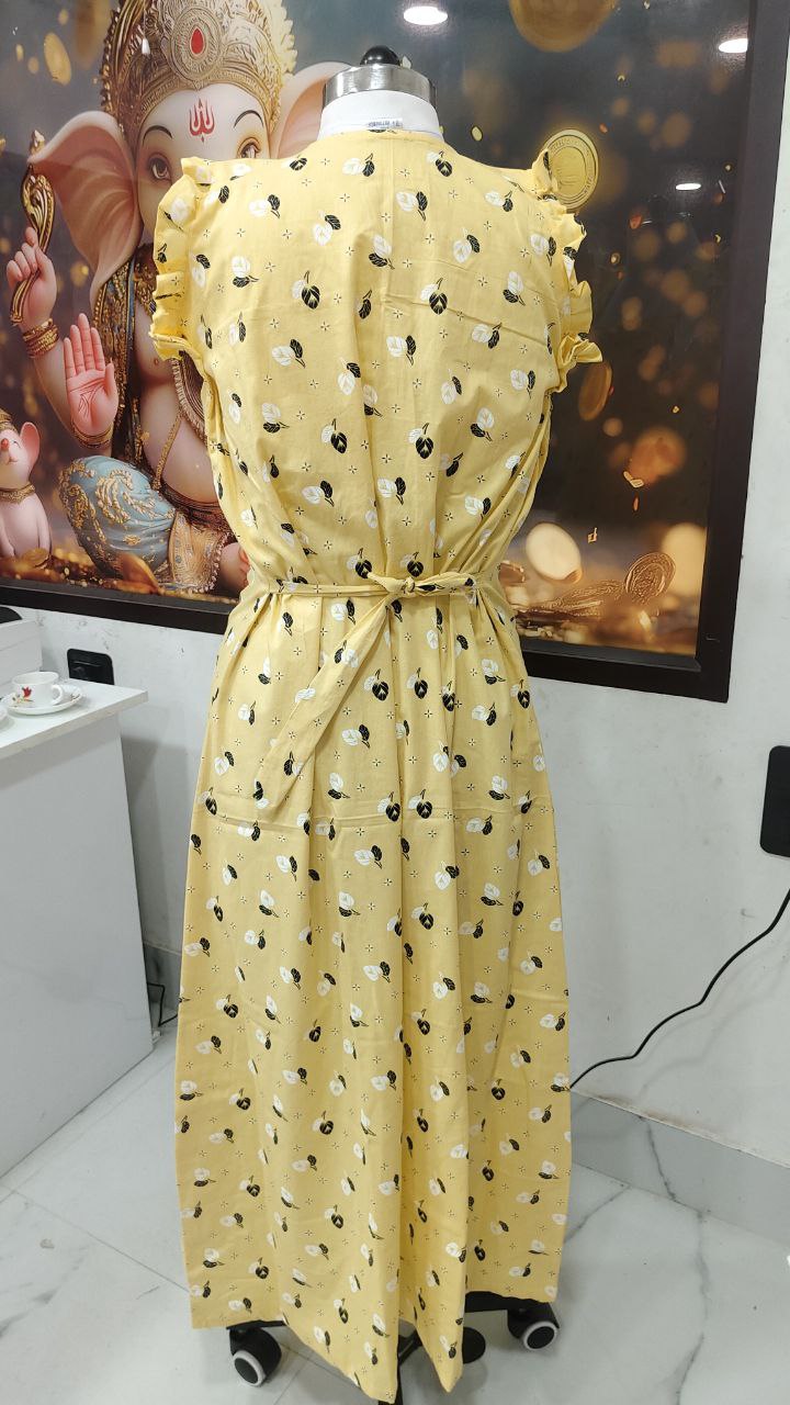 Stay cozy and stylish in this elegant Cotton Nighty in a vibrant pink color with blue floral prints. Tailored from soft, breathable cotton, it offers all-day comfort for lounging or sleeping. The frill cap sleeves and front buttons add a touch of charm to the classic design.